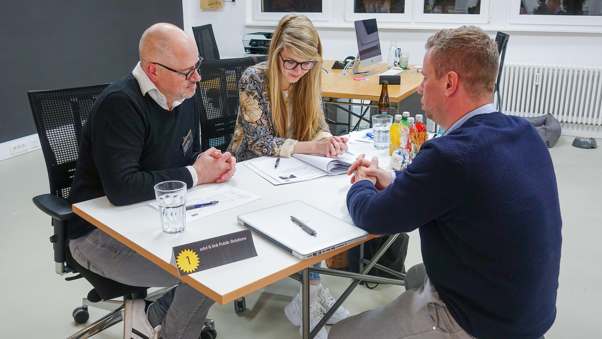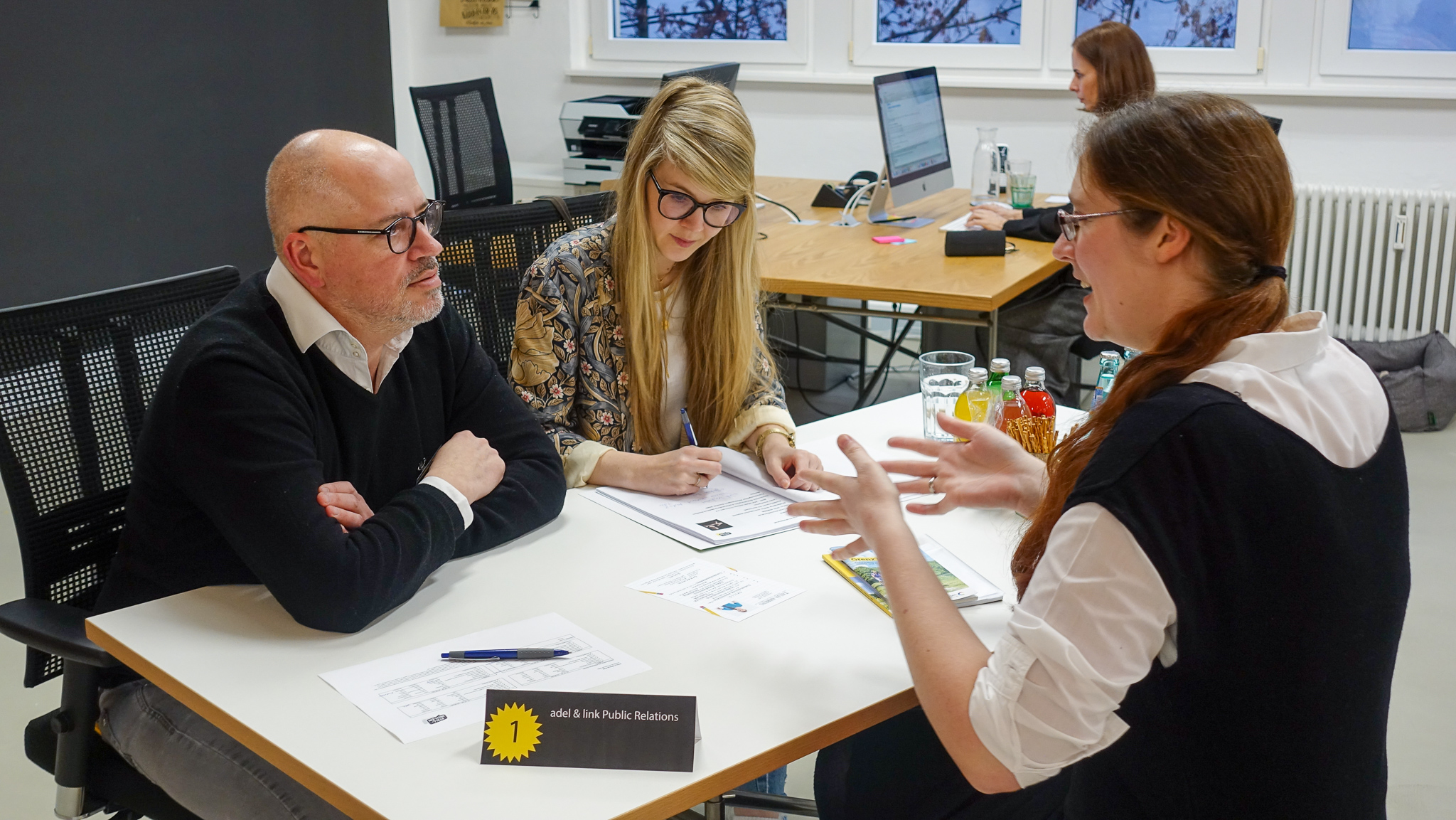Auch im Winter 2020 kam das Speed-Dating STELL-MICH-EIN an den Main. Zu Gast war unser Format für das schnelle Kennenlernen bei adel & link Public Relations. In munteren 3-minütigen Gesprächen lernten sich Agenturen und Bewerber*innen kennen. Zwischendurch gab es einen Workshop von adel & link zum Thema Creative Thinking und Brainstorming-Techniken. Außerdem stellte sich beim STELL-MICH-EIN unser Partner MSI Deutschland vor und präsentierte Computer für Content Creator.